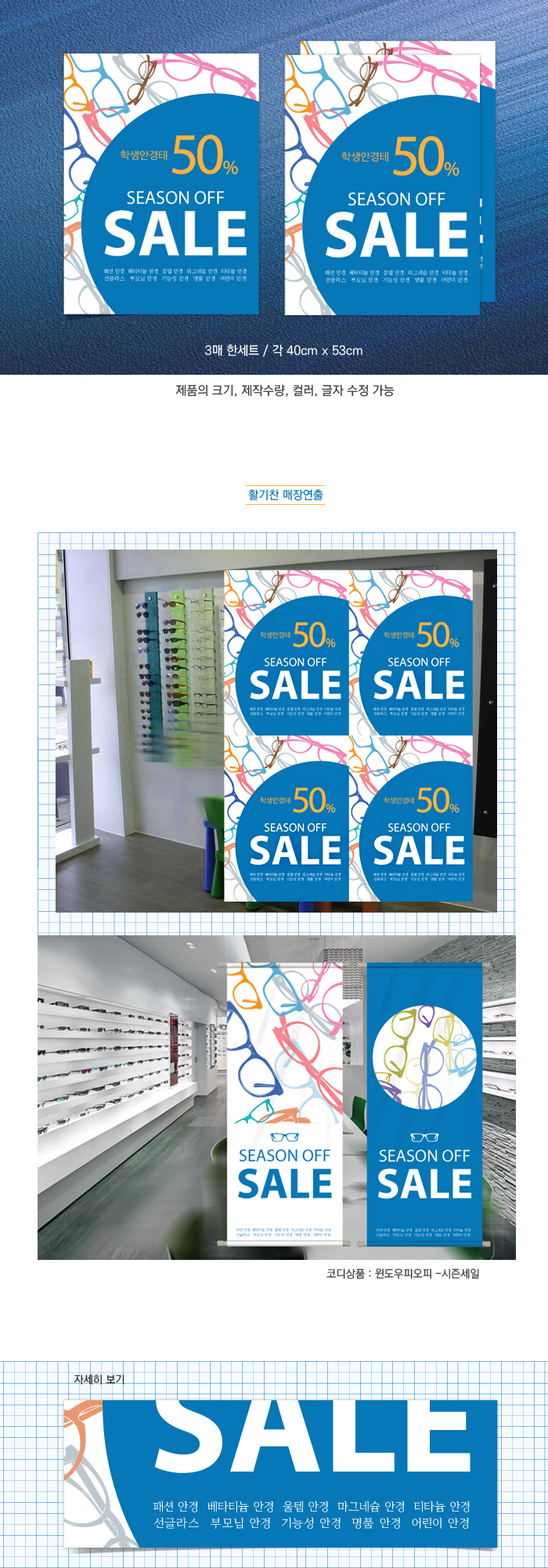 ▶ 품 명 : Pet포스터-시즌세일 ▶ 소 재 : PET ▶ 크 기 : 40cm x 53cm(가로 x 세로) ▶ 구 성 : 포스터3매 |